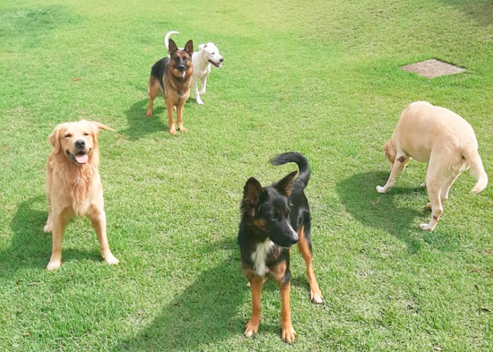 Grupos seguros e separados por porte e temperamento.
